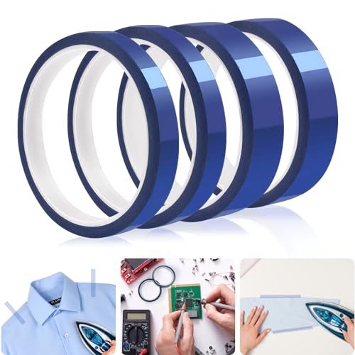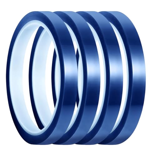 4 rullar värmebeständig tejp, värmeband för sublimering, värmeöverföringstejp, termisk tejp, blå, inga rester för elektronik, tryck, kretskort, gör-det-själv-hantverk (10 mm/20 mm x 33 m)