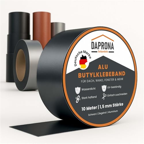 DAPRONA Butyltejp, armerad tejp 10m x 150mm, Svart Aluminium tätningstejp, reparationstejp, tätningstejp för hängrännor, vattentät, värmebeständig