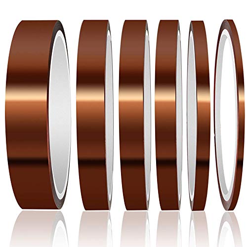 Tillverkad av 6 stycken Kaptontejp, värmebeständiga tejp, 3D-skrivare värmebeständig tejp upp till 180 °C, polyimid elektronik isoleringstejp (3 mm/6 mm/8 mm/10 mm/12 mm/20 mm x 33 m)