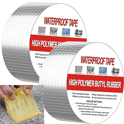 2 st. butyltejp vattentät tejp utomhus bitumentejp självhäftande 5 cm x 5 m supertätningstejp vattentät nötning och värmebeständig för takläckage ytspricka rörbrott (5 x 5)