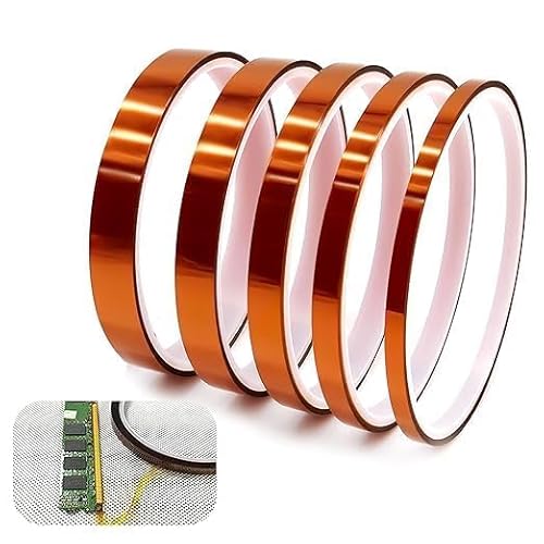 eModwey 5-pack Kaptontejp, värmebeständig tejp, högtemperaturbeständig tejp för elektronik och bilindustri, polyimid-filmtejp (3 mm/6 mm/8 mm/10 mm/12 mm x 33 m)