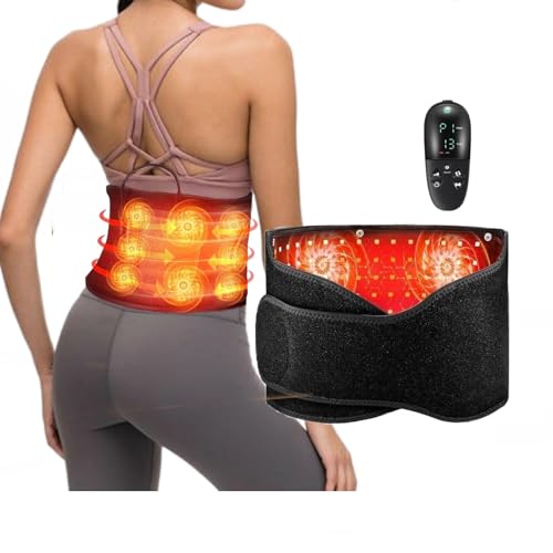 Rödljusterapibälte med massage & 660nm 850nm infrarött ljus, värmedyna för midja, rygg, ländrygg, axel, mage, bensmärta och avslappning, med 5 nivåer, 7 timer, 3 vibrationslägen
