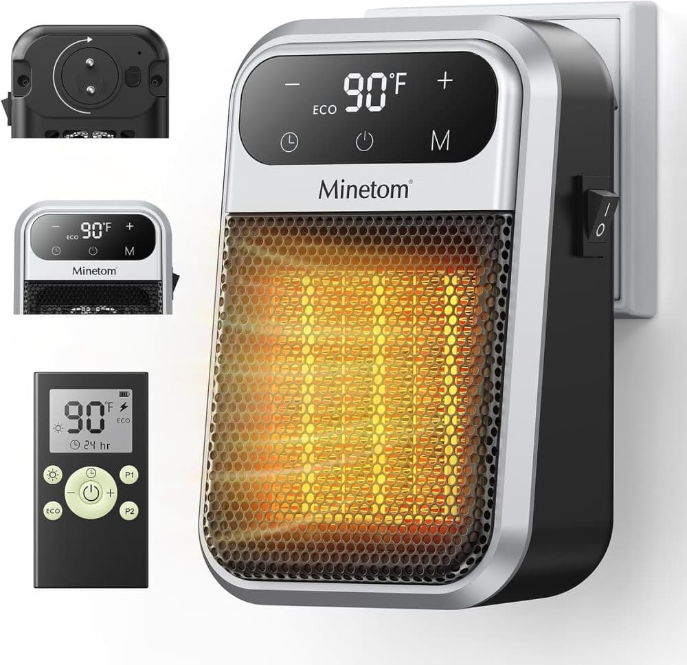 Fuleadture Väggmonterad Värmefläkt med Fjärrkontroll – 800W Plug-in Värmare med LED-Display, Justerbar Termostat och Timer