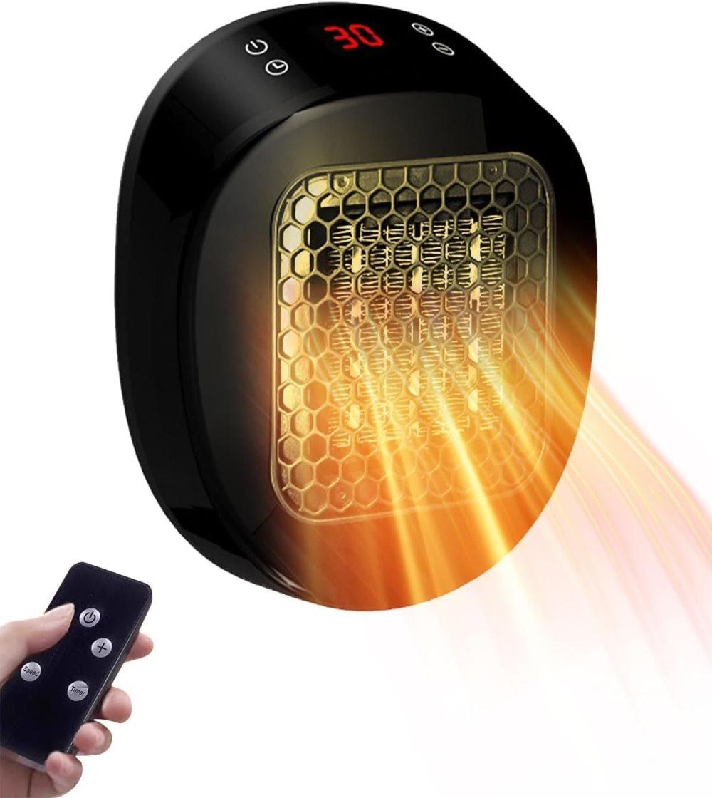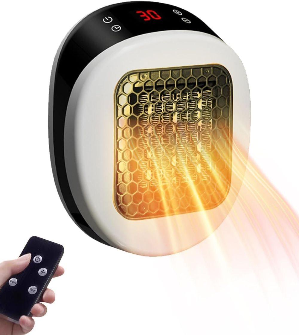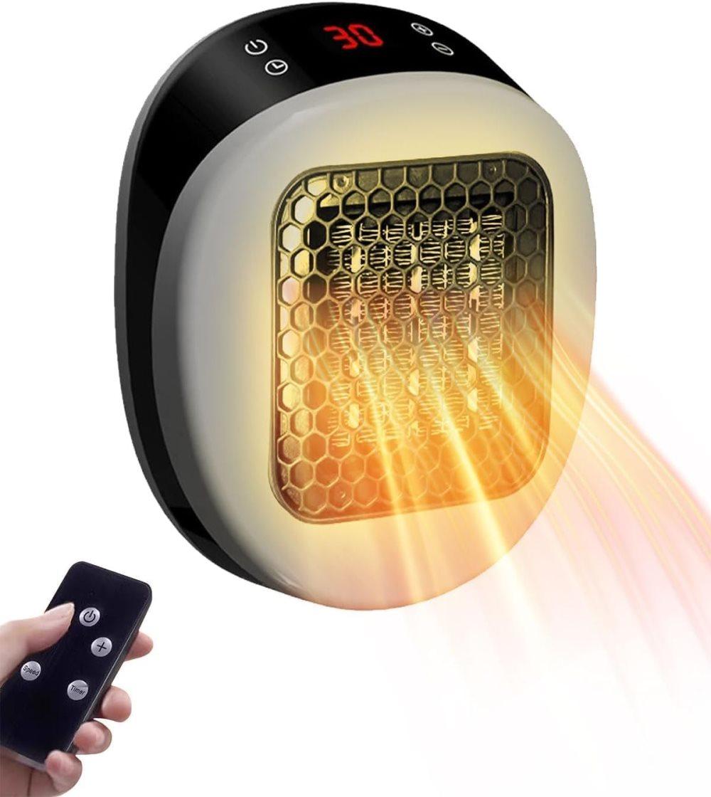 ZUSKYZU Eluttag, värmefläkt med fjärrkontroll, minikeramisk värmefläkt, badrum, energibesparande, tyst uppvärmning, 1 200 W, värmevärmare med 12 timmars timer, termostat