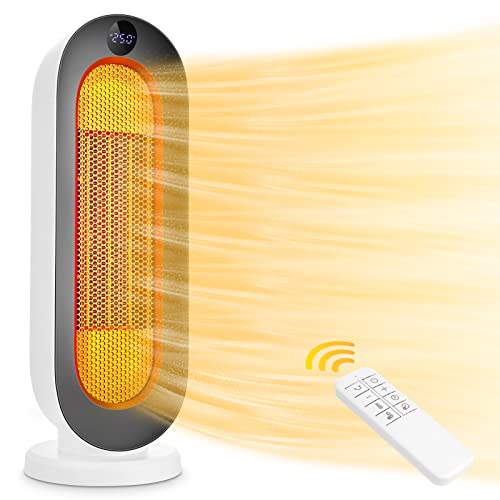 YASHE Keramisk värmefläkt, 1800W elektrisk värmare för hemmet, 2 värmeinställningar, rymdvärmare med fjärrkontroll, 75° oscillation, ECO-läge, 24h timer Svart