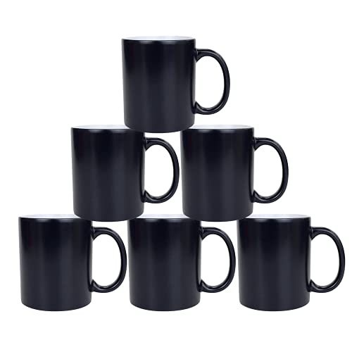 MR.R Sublimation Blanks Set om 6 Black Magic Full Colour Glansig Keramik Muggar som ändrar färg 12oz Varmvatten Värmekänslig Runda Handtag Mugg
