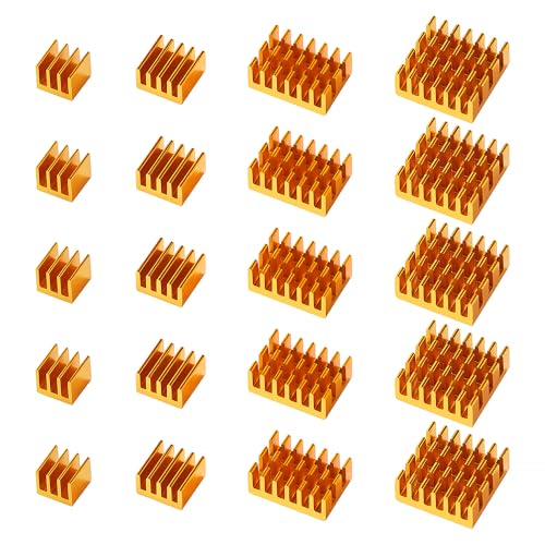 VooGenzek 20 ST Aluminium Kylflänssats, Kylflänsmodul, Kylfläns med Värmeledande, med Termiskt Ledande Självhäftande Tejp, för Kylning av Elektroniska Komponenter, Gyllene