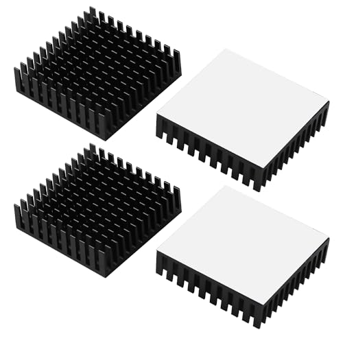 VooGenzek 4 ST Kylfläns av Aluminium, Kylfläns med Värmeledande, Kretskorts Kylfläns, med Termiskt Ledande Självhäftande Tejp, för Elektroniska Komponenter, 40 * 40 * 11 mm, Svart