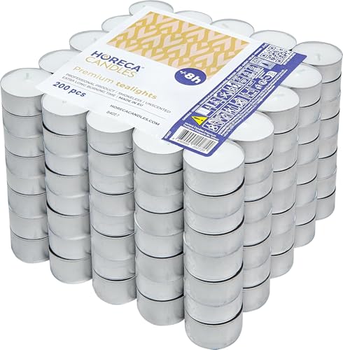 Horeca Candles - 200 värmeljus vita värmeljus - livslängd 8 timmar - luktfritt, doftfritt - 200 st ljusset - transparent plastglas