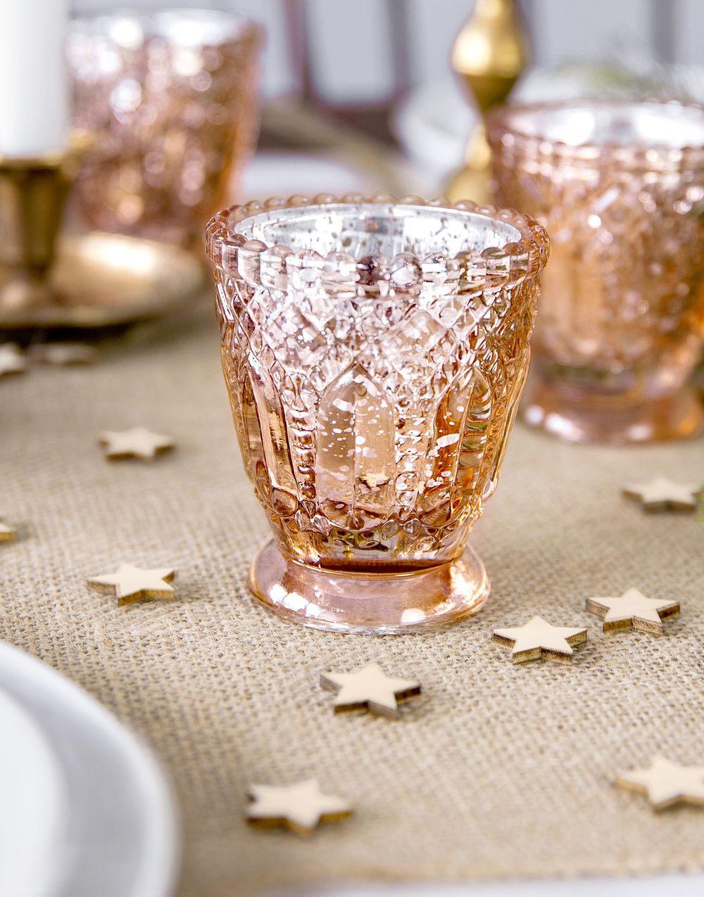 4 st Roseguldfärgade värmeljushållare i glas - 8x7 cm