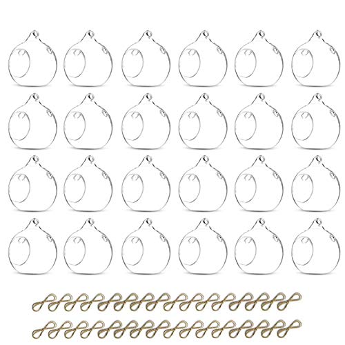 NUPTIO 24 st hängande värmeljushållare i glas, jordglob, växtterrarium, glasklot, luftväxter, suckulenter, mossa, miniatyr trädgårdsplanterare för hem, inomhus, juldekor, diameter 8 cm
