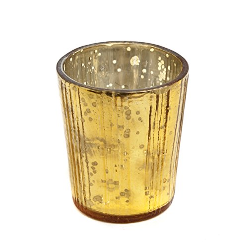 Insideretail kvicksilver glas värmeljushållare, vertikal med sliten gul folie, 7 cm, set med 12, 7 x 5 x 7 cm