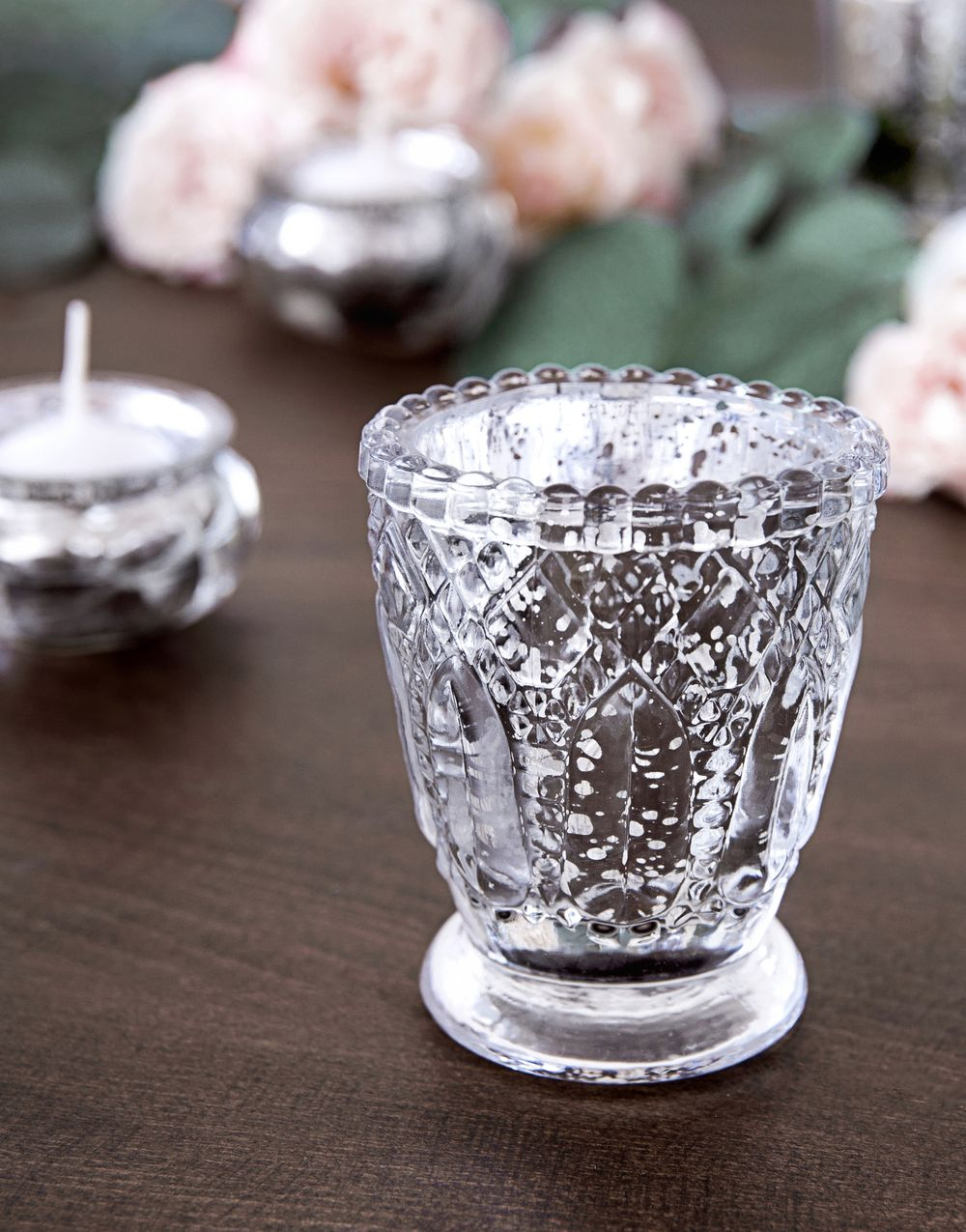 4 st Silverfärgade värmeljushållare i glas - 8x7 cm