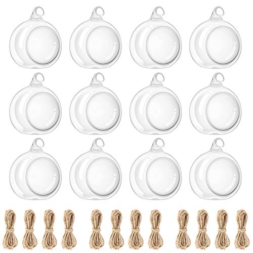 Hängande värmeljushållare i glas, 12 st 6 cm diameter glasglober terrarier glasljushållare för suckulent trädgårdsarbete eller bröllopsdekorationer