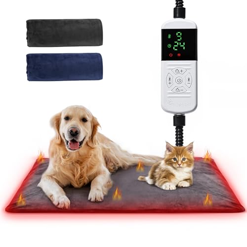 Angelpet Värmedyna för Hund & Katt L 45x70 cm – Elektrisk Värmematta för Husdjur med 30-60℃ Temperaturer, 14 Timers (0–12/24h), Automatisk Skärmavstängning, Anti-bit Kabel 1,8 m, 2 Tvättbara Överdrag