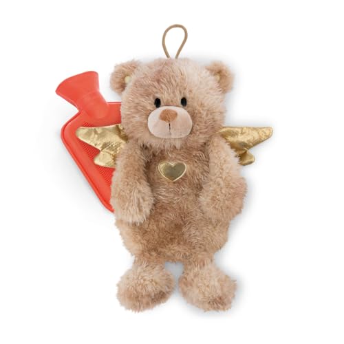 61936 Varmvattenflaska i form av björnskyddsängeln La La Bearie på 300 ml och 35 cm, mysigt värmande plyschdjur med värmeflaska, värmepåse för barn från 10 månader och vuxna, brun