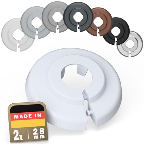 FUX 2 stycken enkla värmerör rosetter i olika storlekar, rörskydd, täckrosetter, uppvärmning, beklädnad, radiator rosetter, vit polypropen, vit (28 mm)