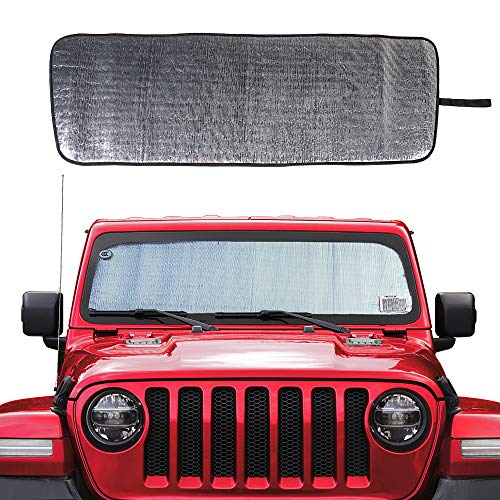 Savadicar Vindruta solskydd för 2018-2023 Jeep Wrangler JL JLU & Gladiator JT, solskydd, värmesköld, aluminiumfolie trippel laminatstruktur, silver