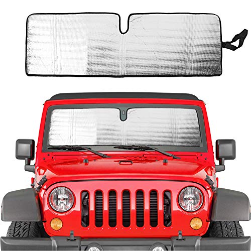 Savadicar vindruta solskydd för 1997-2018 Jeep Wrangler TJ JK JKU, solskydd värmesköld, aluminiumfolie trippel laminatstruktur, silver
