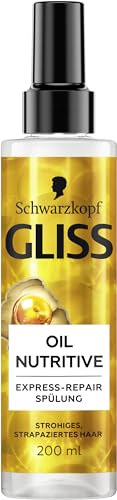 Gliss Express-Repair balsam Oil Nutritive (200 ml), hårbalsam ger näring åt stram, skadat hår, balsam med värmeskydd upp till 230 °C