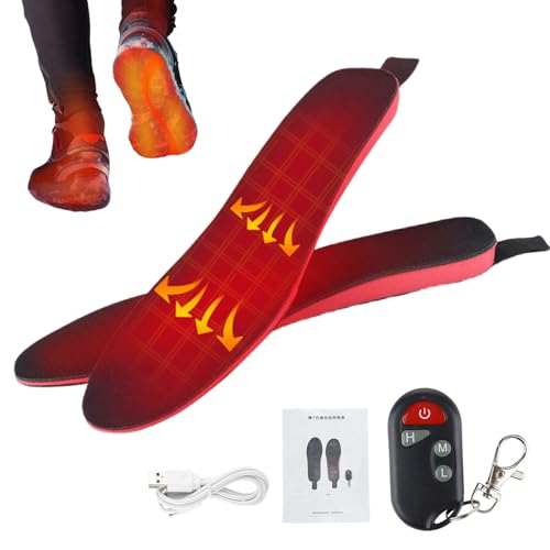 Uppladdningsbara uppvärmda innersulor USB med fjärrkontroll, uppvärmbara sulor för män och kvinnor, 3 nivåer justerbar temperaturtermosulor, ventilerande värmesula för vandring, klättring, camping