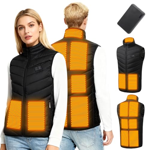 Telguua Uppvärmbar väst med powerbank 12000mAh/5V, dam herr värmeväst, uppvärmd väst, värmeväst uppladdningsbar varm väst med 4 värmare och 3 nivåer temperatu