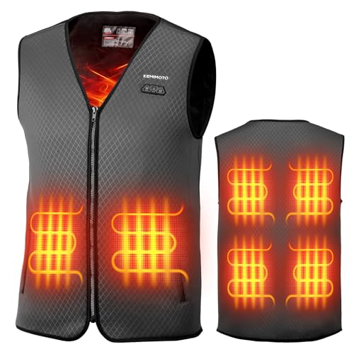 KEMIMOTO Uppvärmbar väst herr, uppvärmd väst med 8 värmezoner, 3 justerbara värmenivåer, USB eletrisk värmeväst för skidkörning, fiske, motorcykel, utomhusaktiviteter (utan batteri), GRÅ, XL