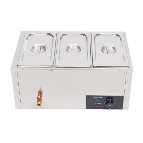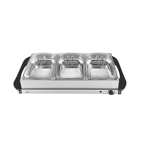 TaNeHaKi Elektrisk matbehållare, rostfritt stål varmhållningsbehållare, temperaturregulator varmhållningsplatta med lock för catering och fest