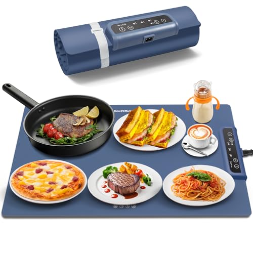 TMEOIIPY Varmhållningsplatta matvärmare, silikon varmhållningsbehållare med justerbar temperatur, upprullbar 6 timmars timer, mat snabb uppvärmning för hemmet bufféer restauranger hus fester