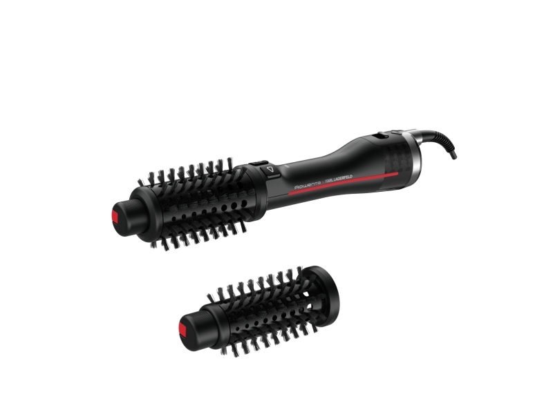 Rowenta x Karl Lagerfeld CF961L K/Pro Stylist roterande varmluftsborste | Glansbooster | Mångsidigt utseende | två borstar | alla hårtyper | torkar och stylar samtidigt | Svart/röd