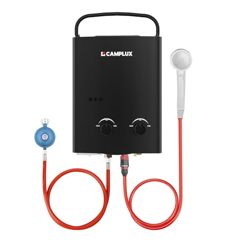 Camplux AY132B-DE tanklös varmvattenberedare 50 mbar, 5 liter LPG med bärbart handtag, 10 kW, propan eller butan gas för campingdusch