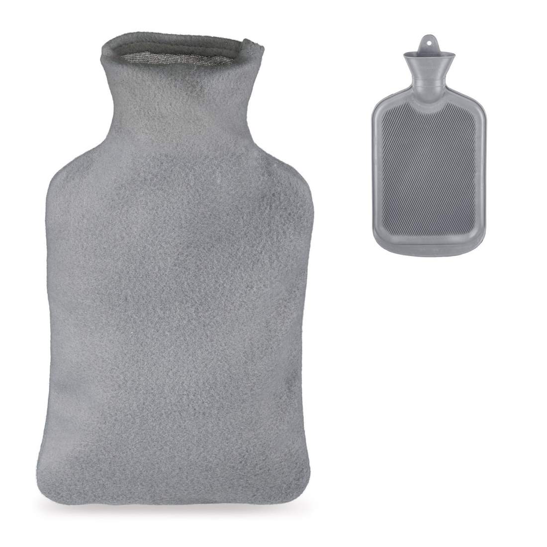 Grå 2L varmvattenflaska med lock – smärtlindring & värme