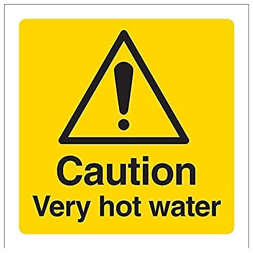 VSafety 62017AF-R "Varning mycket varmt vatten" varningstemperaturskylt, styv plast, fyrkantig, 100 mm x 100 mm, svart/gul