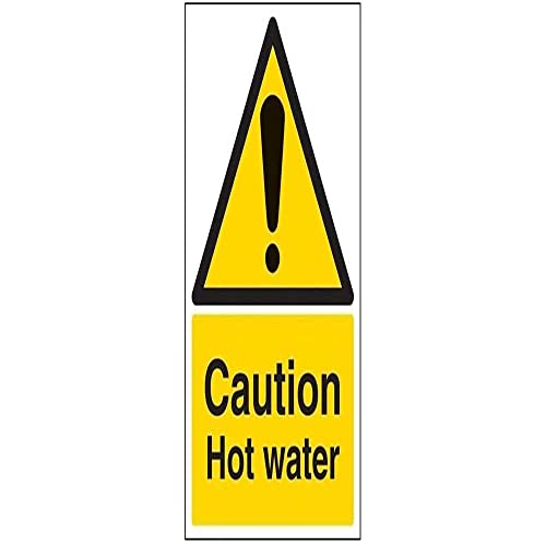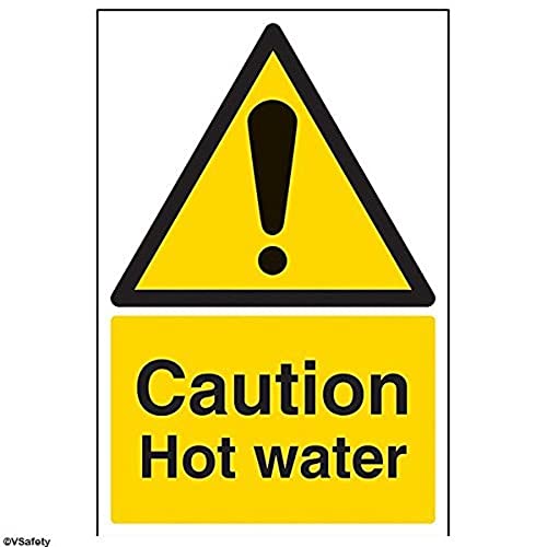 VSafety 62012BJ-S"Varning varmt vatten" varningstemperaturskylt, självhäftande, landskap, 450 mm x 150 mm, svart/gul