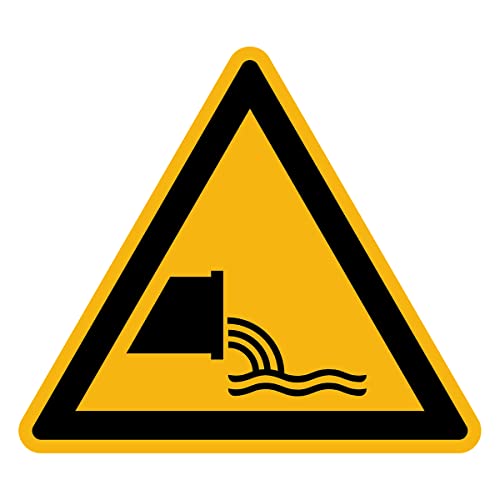Fara varning NF ISO7010 klistermärke - laminerad triangulär laminerad signaltejp vatten- och UV-resistent - fara för utsläpp av spillt vatten - 35 x 35 cm