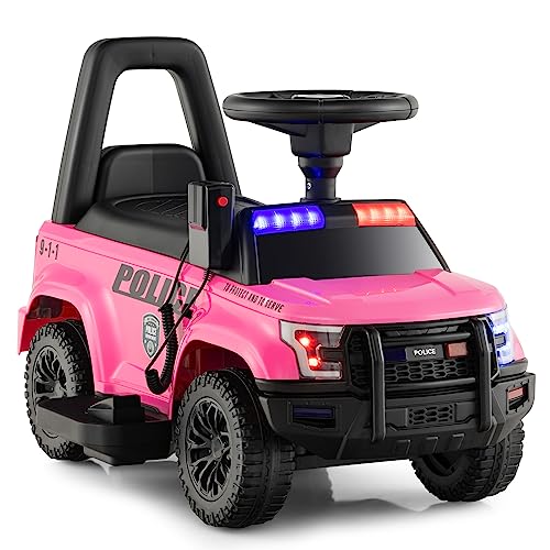 COSTWAY Elbil i polis, 6 V elektrisk barnbil med lagringsutrymme och megafon och varningsljus och tuta och fotpedaler, elektrisk bil för barn från 18 månader (rosa)