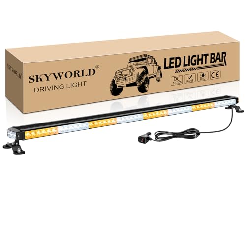 SKYWORLD LED stroboskop blinkersljus bar, 49 tum 125 cm 102 LED blinkande ljus, 12/24 V varningsljus stroboskopljus, magnetisk blixt nödljus för bil släpvagn fordon (bärnsten/vit)