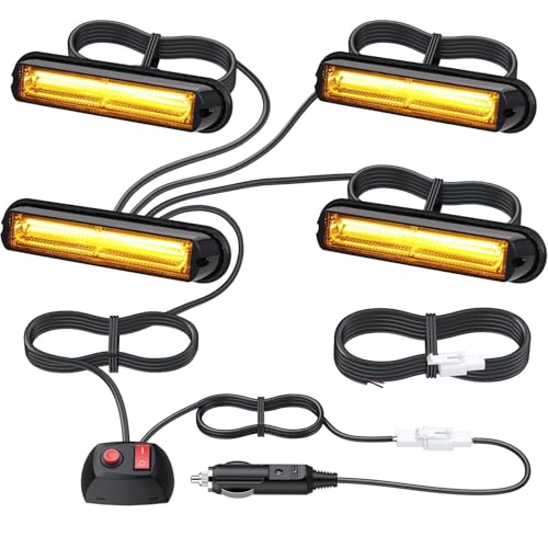 Defvnsy, förpackning med 4 st stänger med varningsljus för bil med stroboskop och 6 lysdioder, varningslampa för fordon, nödljus för bilar och lastbilar, fyrtorn, varningslampa, vit, bärnstensfärgat glas, trafikljus, 12 V–24 V DC