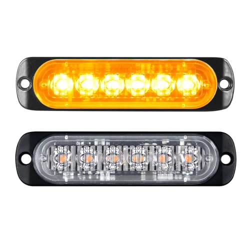 PICAA 2 x bärnsten 6 lysdioder nödstroboskopiska lampor, 12V-24V LED blixt fara varningsljus för bil fordon lastbil släpvagn husvagn