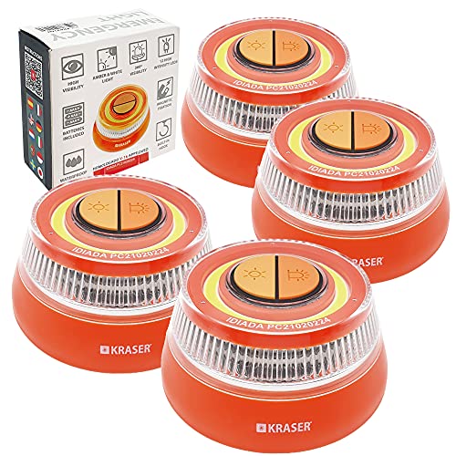 KRASER KR4V16NP4 4 Nödljus Bil, Varningslampa Blinkande Signal, Ljus Vägsignal Homologerad Magnetisk LED-intensitet Autonom, Varningsljus, Väg Signal Ljus Nödbelysning, Fackla