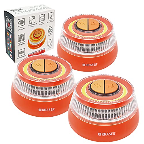 KRASER KR4V16NP3 3 Nödljus Bil, Varningslampa Blinkande Signal, Ljus Vägsignal Homologerad Magnetisk LED-intensitet Autonom, Varningsljus, Väg Signal Ljus Nödbelysning, Fackla