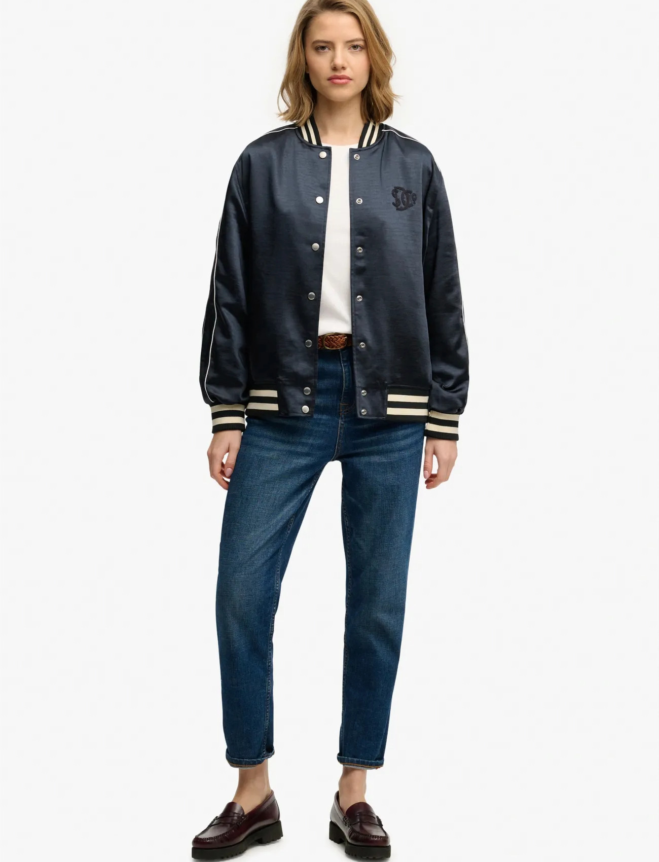 Superdry Varsity Satin Bomber Jacket - Navy - 10