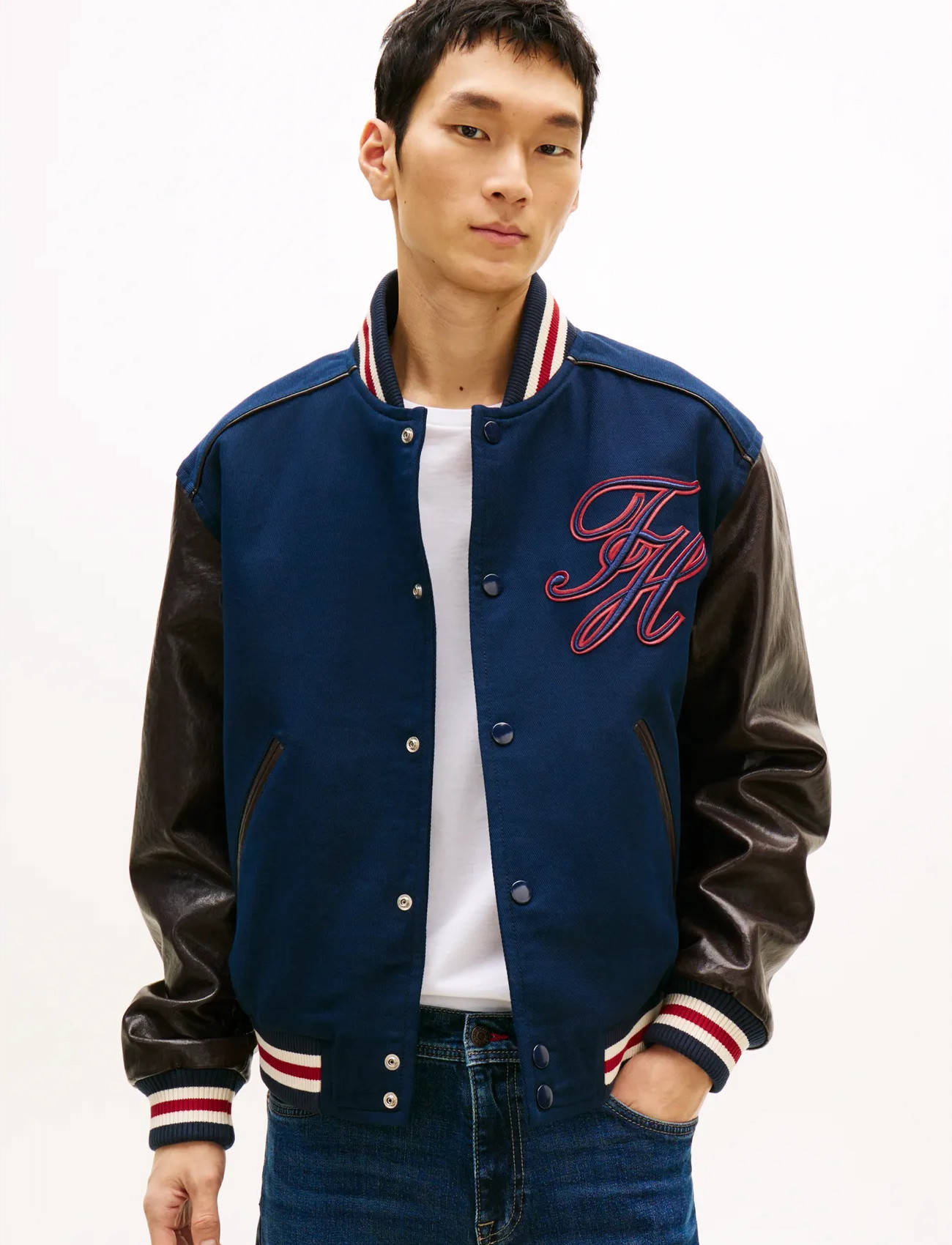 Tommy Hilfiger Leather Varsity Jacket - Navy - M