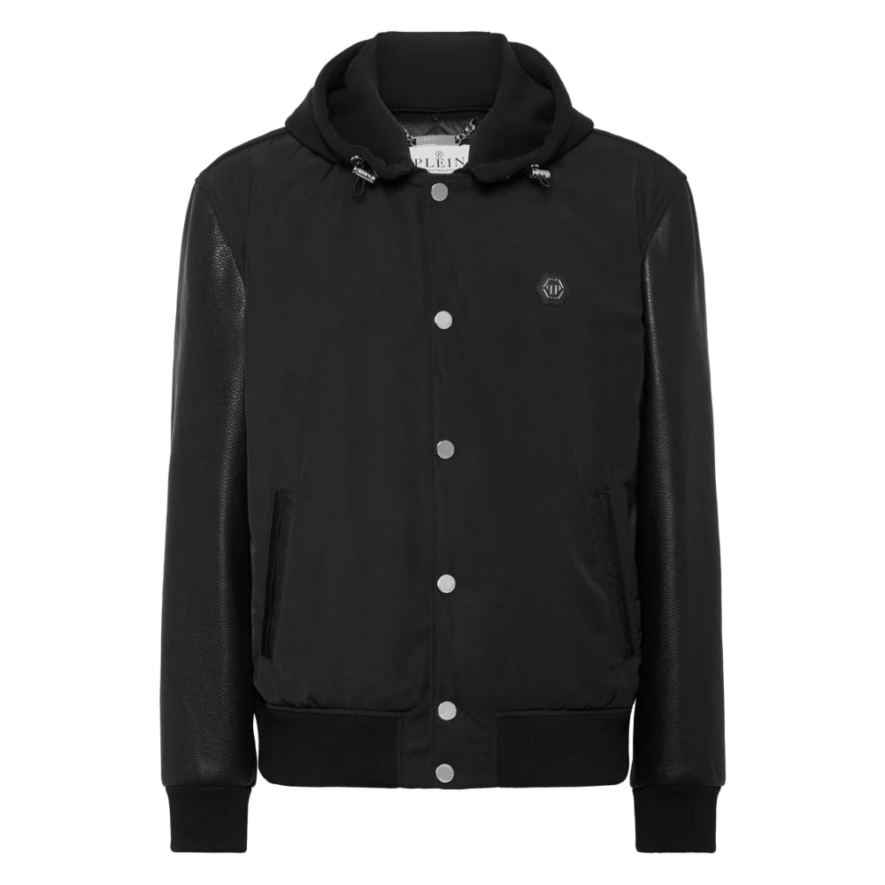 Philipp Plein, Jackor , Herr, XL, Nylon, Nylon & Leather Varsity Bomber Hooded Jacket
