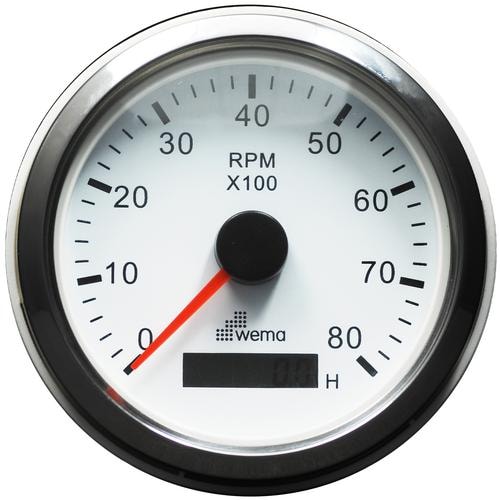 VDO Ocean Line Varvräknare 85mm 0-6000rpm, VDO varvräknare 12/24v 85mm. 0-6000 rpm med timräknare. Saknar frontring.