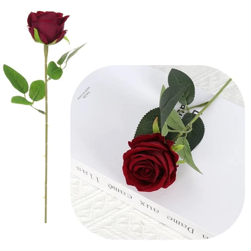 Konstgjorda blomdekorationer i sammet med en gren för en vas på 50 cm - Röd