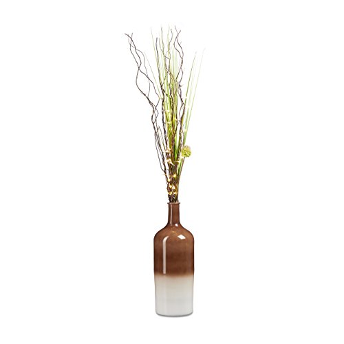 Relaxdays XL Deco vas i retro design, golvvas 46 cm, med färggradent, i flaskform, storlek: 46 x 15,5 x 15,5 cm, brun/vit