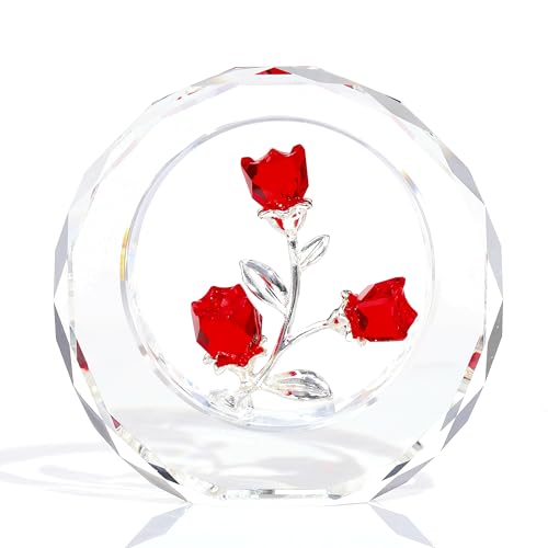 Röd ros blomma kristallfigur med vas – bukett blommor ornament gåvor för fru flickvän kvinnor – handgjord kristallblomma samlarobjekt hem bordsdekor för alla hjärtans dag bröllopsdag