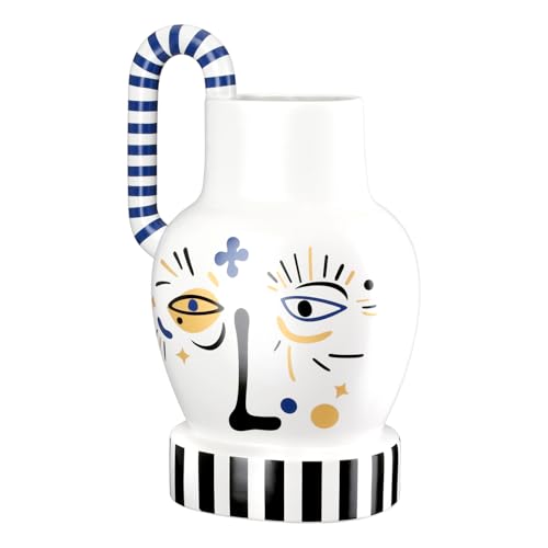 GILDE Vas med handtag av keramik – vit – höjd 36 cm x bredd 24 cm – med ansiktsmotiv – vattentät dekorativ vas