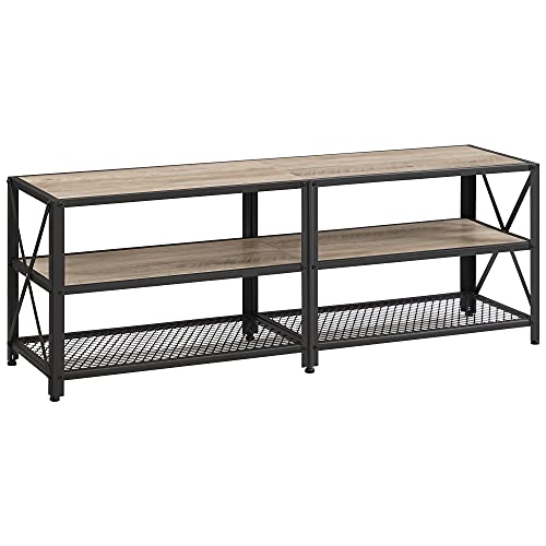 VASAGLE TV-stativ för 60-tums TV, TV-konsol, underhållningscenter för vardagsrum, 3-nivåers TV-bord, stålram, industriell stil, grått och svart LTV094B02
